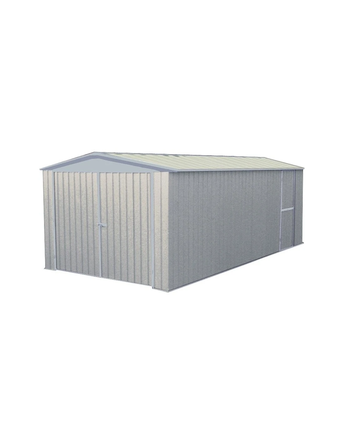 Garage en métal gris clair muni d’une porte de service pour faciliter l’accès !