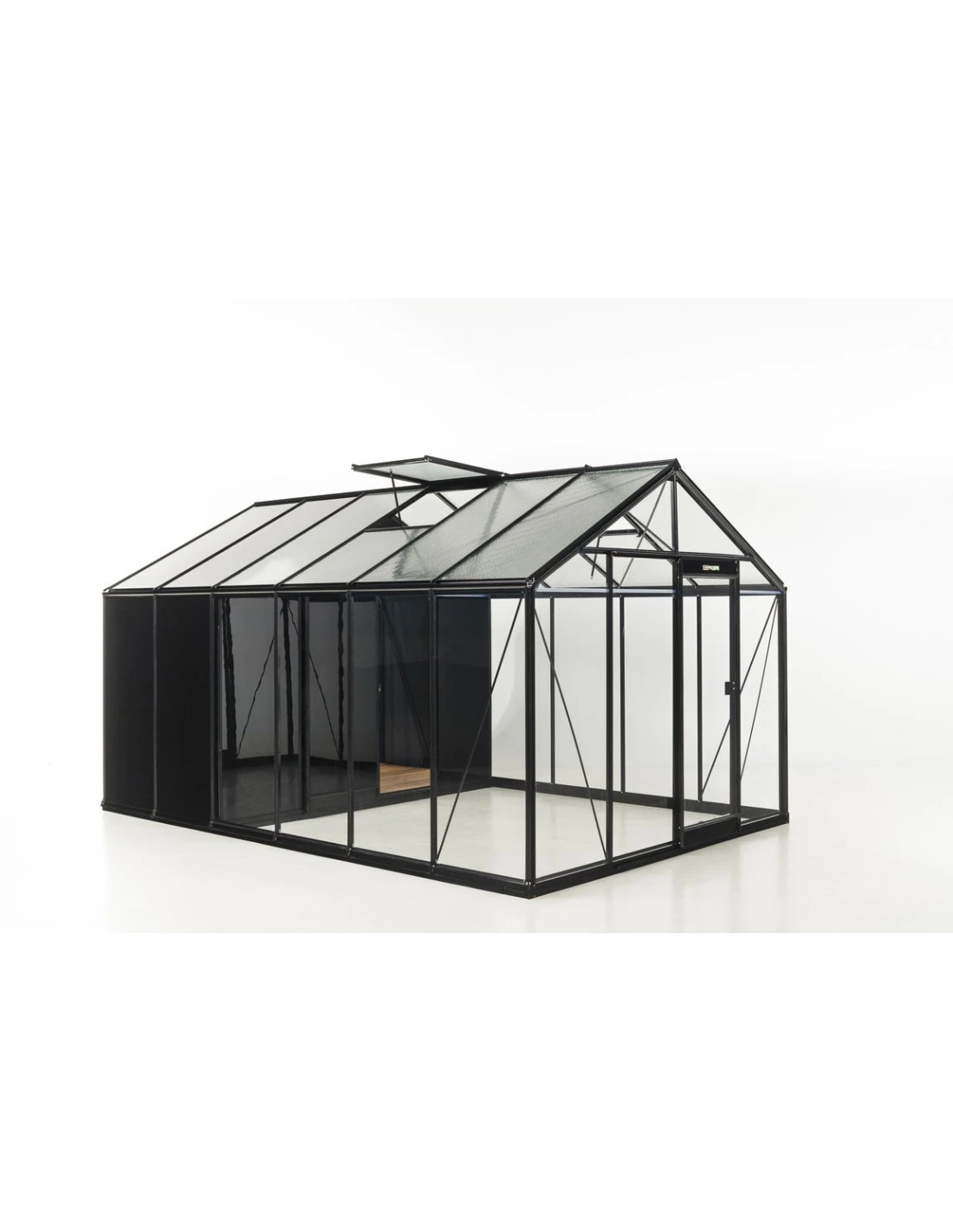 - Parois en verre trempé clair de 4 mm et toit en verre martelé trempé